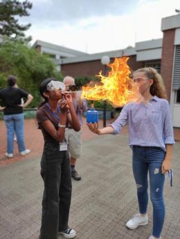 Neben dem Erstellen und Vortragen der Präsentation, führten wir in der abendlichen Schiene auch viele spannende Experimente durch, zum Beispiel Feuerspucken. Manchmal schauten wir auch den anderen Gruppen bei ihren Projekten zu (und andersherum), was mir ebenso Spaß machte wie selbst zu arbeiten, da wirklich Spannendes dabei war.
